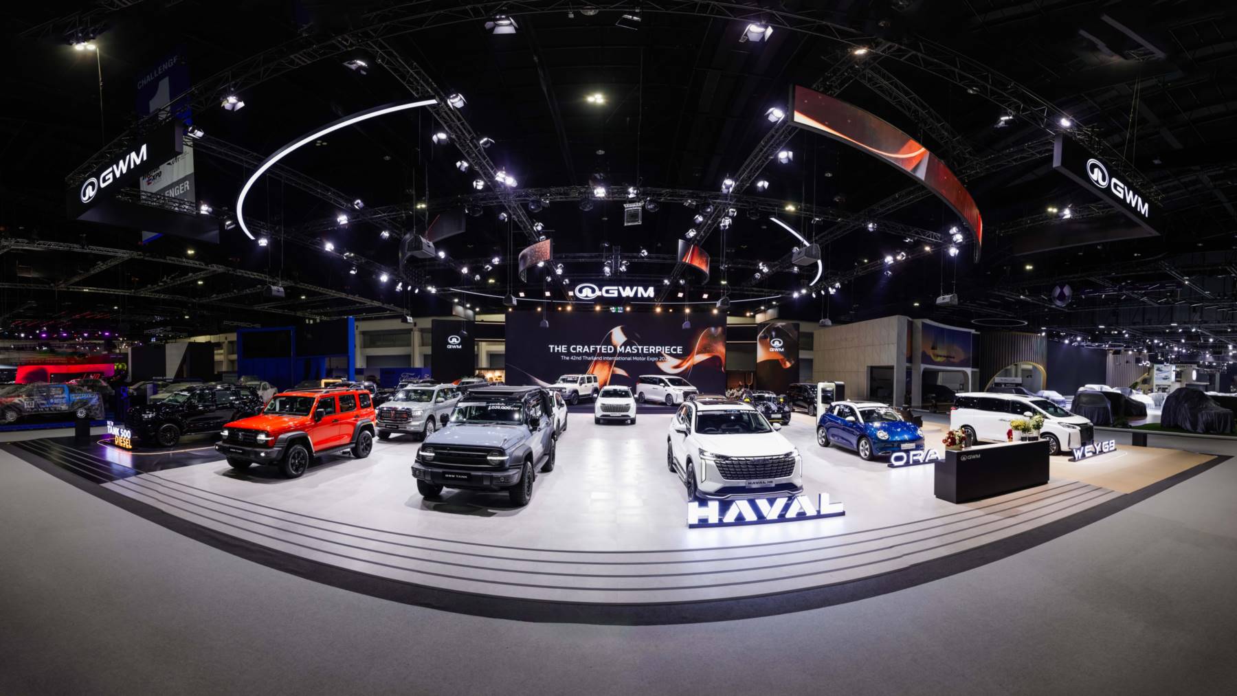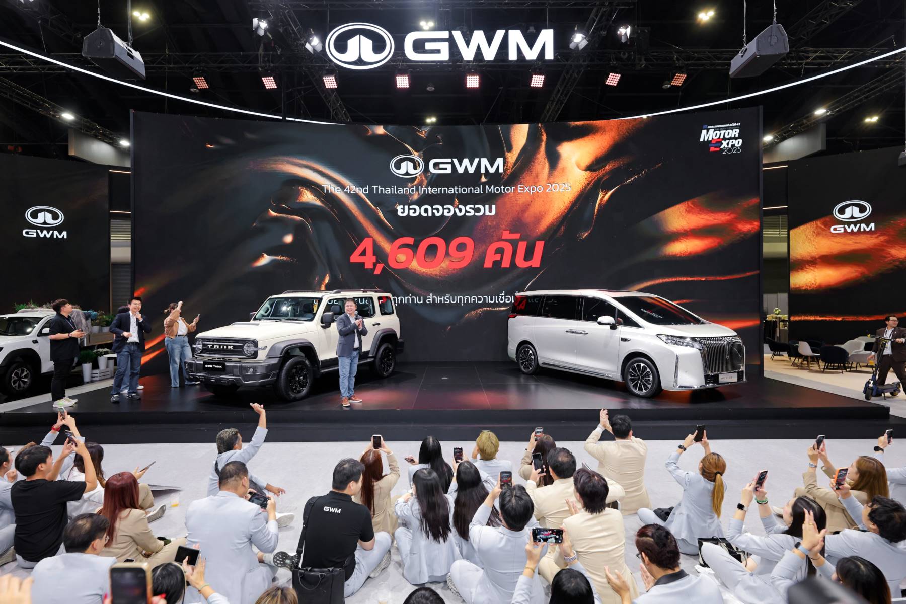 GWM TANK 300 Diesel ยังคงเป็นดาวเด่นของบูธ โดยมียอดจองแบรนด์สูงสุด 1,818 คัน โดดเด่นด้วยดีไซน์ SUV รูปทรงกล่องที่แข็งแกร่ง ซึ่งทำให้แตกต่างจาก SUV รุ่นอื่นๆ ในตลาด ผสมผสานกับภาพลักษณ์ระดับพรีเมียมและสมรรถนะการขับขี่ที่รองรับการใช้งานที่หลากหลาย