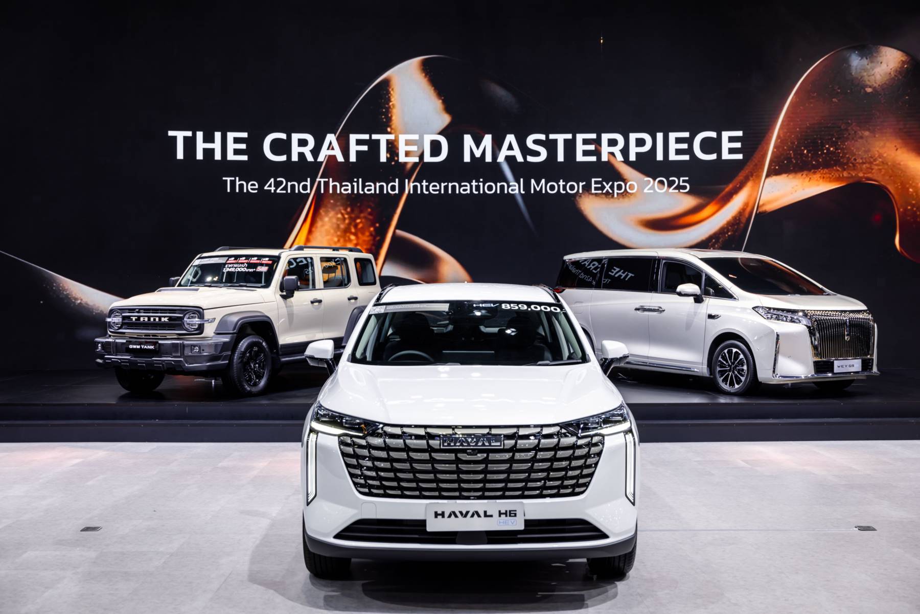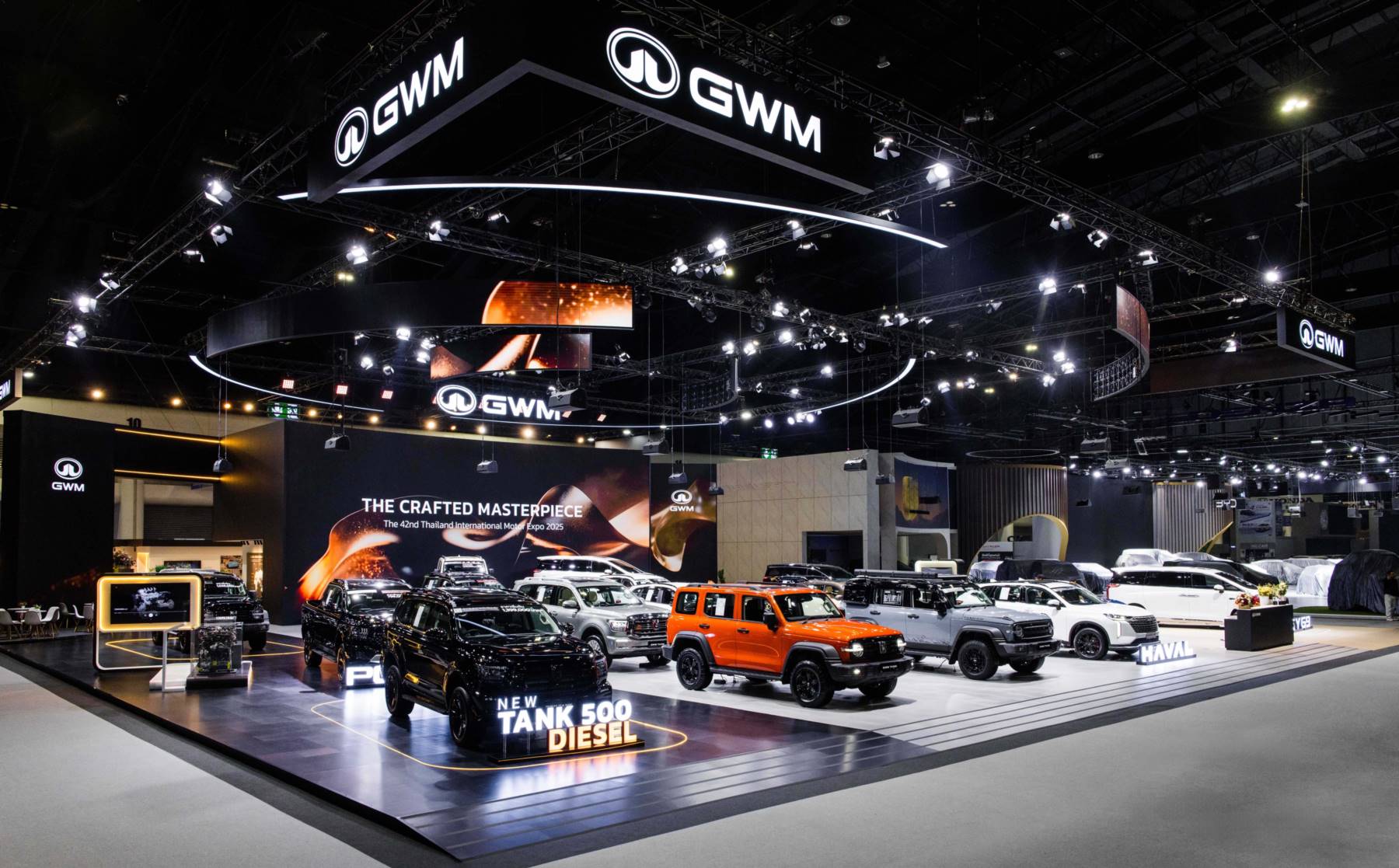 GWM TANK 300 Diesel ยังคงเป็นดาวเด่นของบูธ โดยมียอดจองแบรนด์สูงสุด 1,818 คัน โดดเด่นด้วยดีไซน์ SUV รูปทรงกล่องที่แข็งแกร่ง ซึ่งทำให้แตกต่างจาก SUV รุ่นอื่นๆ ในตลาด ผสมผสานกับภาพลักษณ์ระดับพรีเมียมและสมรรถนะการขับขี่ที่รองรับการใช้งานที่หลากหลาย