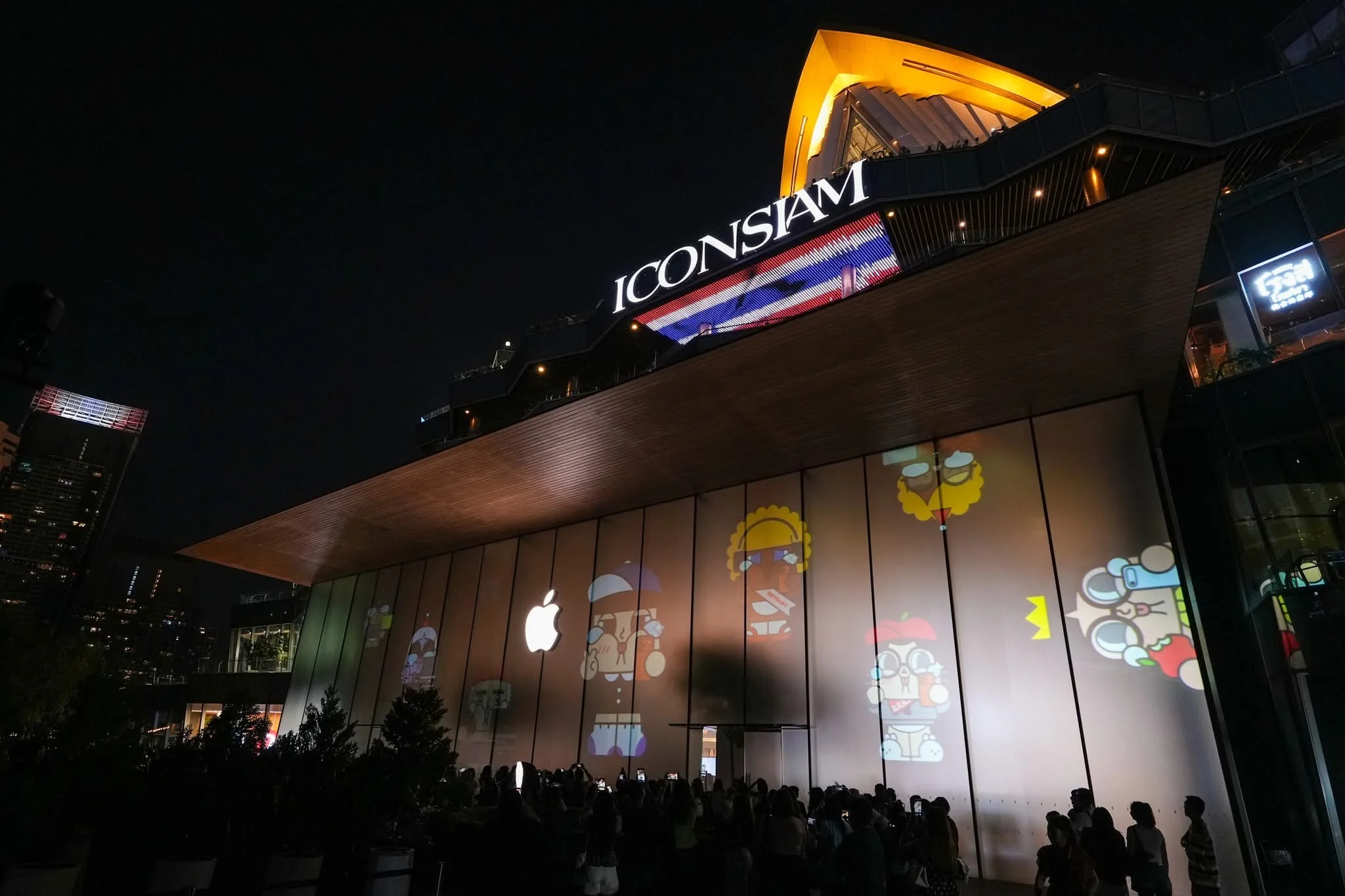 อีกหนึ่งภาพที่ไม่อาจลืมเลือนที่สะท้อนความยิ่งใหญ่ระดับโลกได้อย่างชัดเจน คือการเปิด Apple Store แห่งแรกในประเทศไทยที่ไอคอนสยาม ซึ่งเป็นปรากฏการณ์สำคัญที่สร้างความสั่นสะเทือนไปทั่วภูมิภาค ด้วยดีไซน์กระจกใสตัดกับวิวโค้งแม่น้ำเจ้าพระยาจึงสวยงามมาก มันได้กลายเป็นช่องว่างที่สมบูรณ์แบบระหว่างเทคโนโลยีล้ำสมัย กับความสวยงามของแม่น้ำ ใครมาก็ต้องถ่ายรูปสวยๆ ด้วย เพราะนี่คือสุดยอดความหรูหราริมน้ำ